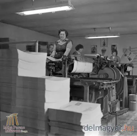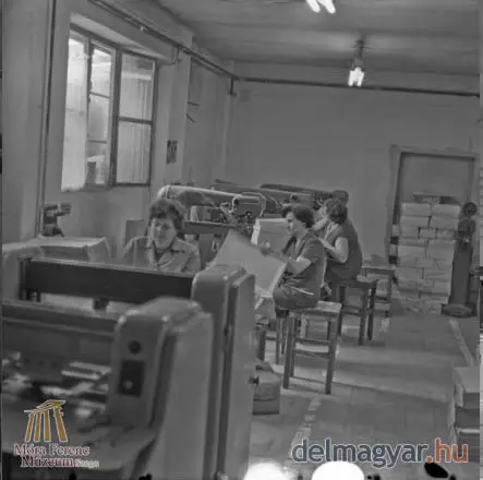 Folyik a munka a dobozüzemben: ahogy a kép is mutatja, a munkáshölgyek között nagy népszerûségnek örvendtek a pöttyös ruhák, melyek minden bizonnyal feldobták a szorgos hétköznapokat. A felvételt Somogyi Károlyné fotóriporter készítette 1978-ban.